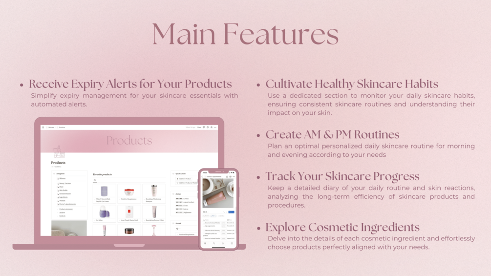 This Notion template is your personal assistant in the world of skincare — helping you build routines that actually work and bring visible results.